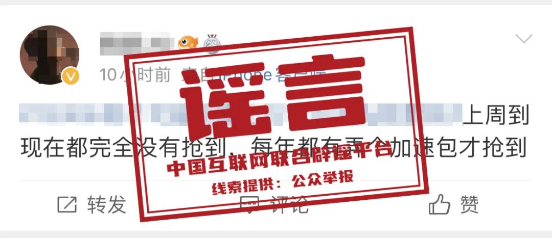 从“加速包”的购票陷阱,到“老年人免费乘车”的歪曲解读,再到“高铁耗电”的攻击抹黑,涉铁路运输领域网络谣言混淆视听、误导公众,损害铁路形象和旅客切身利益。2026年春运将至,为澄清事实、正本清源,国铁集团党组宣传部联合中央网信办举报中心特此发布“涉铁路运输领域年度网络辟谣榜”,集中盘点典型谣言案例,帮助广大网民远离购票陷阱、安全有序出行,有力维护铁路形象,共享清朗网络空间。 谣言一: 第三方购票平台“加速包” 能提升抢票成功率 ![]() 真相:当前,部分第三方平台推出“双通道VIP抢票”“加速包抢票”“光速抢票”等付费抢票服务,宣称“用户购买加速包可以优先购票”“提高购票成功率”。对此,国铁集团表示,抢票服务无法改变铁路12306平台的购票顺序,第三方平台所谓的“抢票功能”落后于铁路12306的候补购票,没有实际意义。这些套路均是将铁路12306免费候补服务,包装成需要付费购买的“平台特权”,误导消费者,已有平台因此受到市场监管部门处罚。铁路12306后台数据分析显示,无论旅客是否购买“加速包”,购买成功率是一致的。一直以来,铁路部门坚持公平公正原则,采取技术手段等方式全力维护广大旅客合法权益和正常售票秩序,通过对铁路12306系统实时监测和大数据分析,一旦发现用户购票行为异常,将对其采取限流措施。 谣言二: 高铁剩余车票会打包卖给 第三方购票平台 在第三方购票平台搜索一串数字 即可购买低价打折票 ![]() 真相:这完全是虚假宣传。铁路12306是唯一官方售票渠道,绝不存在“在第三方购票平台搜索一串数字即可购买低价打折票”的情况。所谓“低价打折票”实为铁路12306原有优惠,平台刻意突出“折扣”字样,制造优惠假象。实测发现,在某第三方购票平台输入口令后,首页显示“6折购票优惠”,但这一优惠并非适用所有线路,而是平台使用技术手段汇总展示铁路12306原有的6折以内优惠车票。 谣言三: 广东省城际铁路对广州老年人免费 ![]() 真相:2024年5月,一张《广东省城际铁路对广州老年人的免费政策》截图在社交网络流传,其内容显示“广州老年人持优待卡在非高峰期搭广东城际可享受半价或免费优惠”,引发关注。对此,广东城际公司公开回应称:此消息不属实。按照《铁路旅客运输规程》规定,目前广东城际运营线路持中华人民共和国残疾军人证、中华人民共和国伤残人民警察证、国家综合性消防救援队伍残疾人员证的人员凭证以及学生凭学生证可以购买优待票,其中并不包括老年人优惠。 谣言四: 中国高铁1公里耗1万度电 ![]() 真相:2024年9月,网上流传“中国高铁一公里耗一万度电”“日本新干线比中国高铁能耗低得多”等言论,引发关注。对此,中国铁道科学研究院集团有限公司机车车辆研究所表示,该说法与事实不符。我国高铁现有四个主力车型,根据其在京沪高铁(往返距离2636公里)达速350km/h运行条件下的能耗测试数据显示,其耗电量分别为:56931度、61861度、51364度、55490度,据此推算出平均每公里耗电量分别为:21.6度、23.5度、19.5度、21.1度。由此可见,网传“一公里耗一万度电”,其实是将高铁动车组按轮周功率计算得出的每小时耗电量,错误当成每公里耗电量,偷换了单位时间与单位里程的概念。此外,网传“日本新干线比中国高铁能耗低”这一说法亦毫无根据,与事实不符。中国高铁列车与日本新干线动车组平均每公里能耗相当。 谣言五: 春运可提前90天预约抢票 ![]() 真相:2024年12月,某第三方平台发布“春运抢票开始”“最早可提前90天预约”等信息,引发关注。对此,铁路12306平台回应,该信息不实,纯属平台营销炒作。铁路部门提醒广大旅客,通过第三方平台购票,不仅易遭附加费、捆绑销售服务等“陷阱”,还存在个人隐私信息泄露、资金安全等风险,直接损害旅客出行权益。请广大旅客认准铁路12306平台,通过铁路官方渠道购票,同时确认票款收款方为“中国铁路网络有限公司”,避免后续退票、改签时无法收到应退款项。 谣言六: 给12306微信公众号留言 “许愿”就能成功候补车票 ![]() 真相:2025年4月,有网友发帖称,“通过12306微信公众号发送‘许愿候补成功’‘候补车次***,候补单号***,帮我兑现一下吧’等消息,能成功买到车票”。对此,铁路12306官方客服表示:留言补票成功纯属巧合,铁路12306人工无法干预补票结果,一切都是系统自动候补的结果。建议旅客采用正确候补方式,以免错过购票时机。 谣言七: 高铁车厢二氧化碳浓度超标 ![]() 真相:2025年6月,有媒体报道称,“坐高铁爱犯困是因为车厢二氧化碳浓度超标,网友实测为2000ppm,超过国家标准2倍”,引发关注。对此,国铁集团表示,经测试,车厢内二氧化碳浓度一般不超过1500ppm,远低于铁路行业标准(也是国标)“二氧化碳浓度不超过2500ppm”。报道所称“超过国家标准2倍”的说法不实,其参照的民用建筑室内二氧化碳浓度不超过1000ppm标准不适用铁路。此外,动车组配置了空调通风与压力保护系统,可实现每小时6至12次的换气,人均新风量超过15m³/h,并且根据需求可随时优化调整空调通风系统控制策略,加大新风供应量,确保车厢内通风良好,人体舒适感较好。 谣言八: 12306能“在线换座” ![]() 真相:2025年7月,有网民分享自己使用第三方购票平台实现“在线换座”的教程,引发关注。对此,中国铁路明确回应:铁路12306没有在