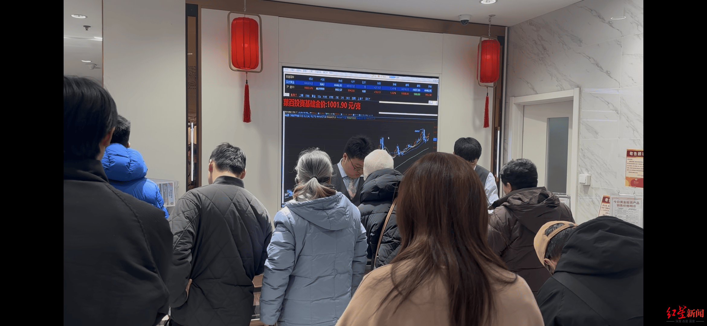 ▲金条柜台前排队的顾客